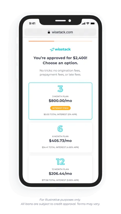 With Wisetack, you can break up the cost of a service into easy monthly payments. The application takes about a minute to complete, and checking your loan options does not impact your credit score.