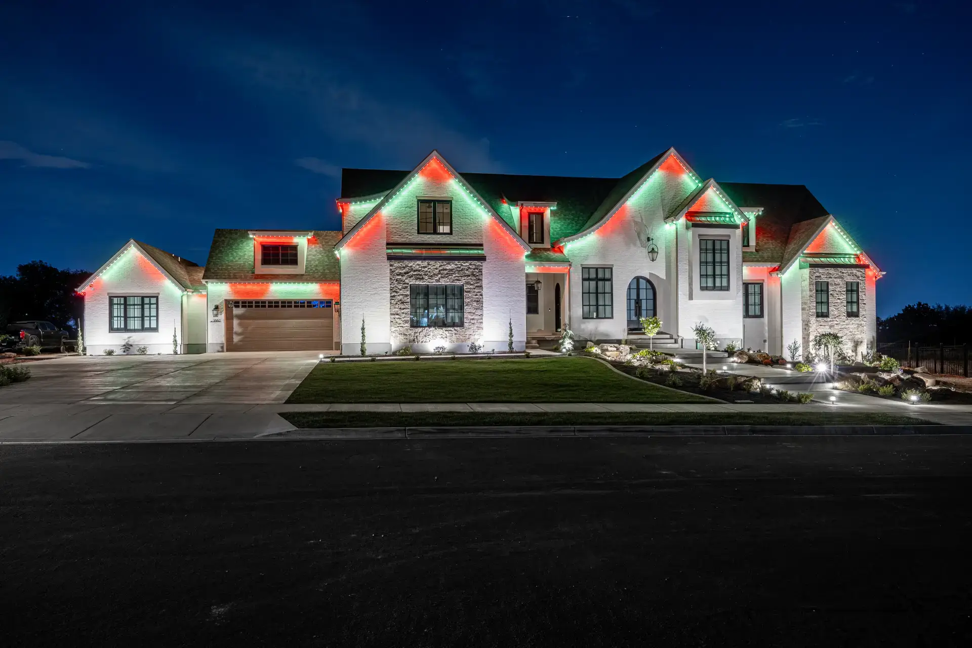 Our professional residential Christmas light installation makes your home always holiday-ready. The Trimlight system offers extensive possibilities for customization, enabling you to highlight your home’s architecture and create a personalized lighting display for Christmas and beyond. From birthdays to anniversaries, our permanent lighting system is designed for every occasion.